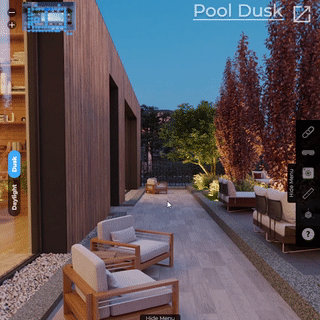 Highlight any object and turn it interactive. Speak to your prospects through highlighted furniture, amenities, or even an entire building with additional content or object description.